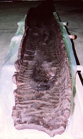 丸木舟(樹種は松材)は長さ626cm、最大幅65cm、舳先と艫の一部が欠損しているだけで、ほぼ完形の状態にあり、今後の研究にも役立つ貴重な考古資料と言えます。