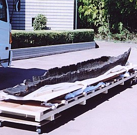 今回は昭和28年に茨城県龍ケ崎市の牛久沼八間堰の下流である谷田川の地表下1.5メートルから発見された縄文時代後期のものと思われる丸木舟の保存加工を担当させて頂きましたので紹介致します。