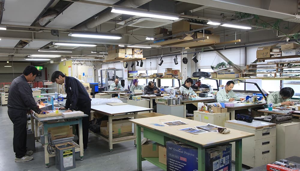 オフィス紹介 sl4-min 事業紹介 製作実績 会社情報 リンク 採用情報 ホーム > 会社情報 > オフィス紹介 オフィス紹介 当初川崎にて営業を開始した弊社は、1984年、八王子にあった工場へ業務機構を統合しました。 以来30年以上にわたり、この地で業務を営んでいます。 地上3階建ての本社は、1階と2階を製作エリアに割り当て、オフィス機能を3階に集約。 模型製作やレプリカ製作、文化財の保存・修復については自社内工場で行っているため、製造・品質管理が徹底されています。 会社沿革